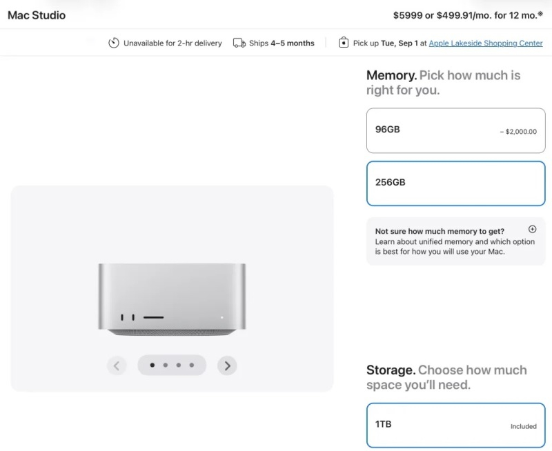 Apple распродала все Mac Studio с 256 Гбайт оперативки — сроки доставки растянулись до 4–5 месяцев